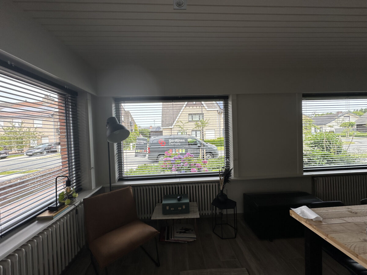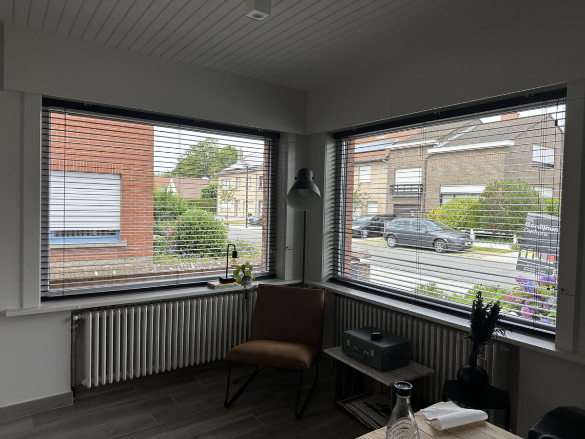 Combinatie zwart en wit screen rolgordijnen te Kuurne